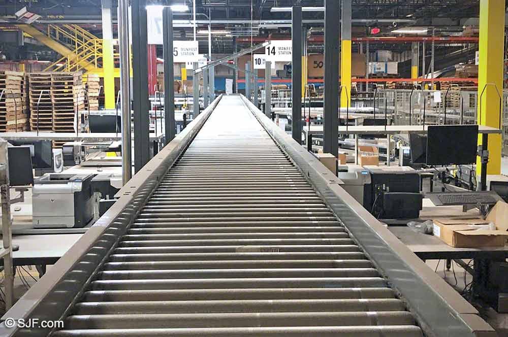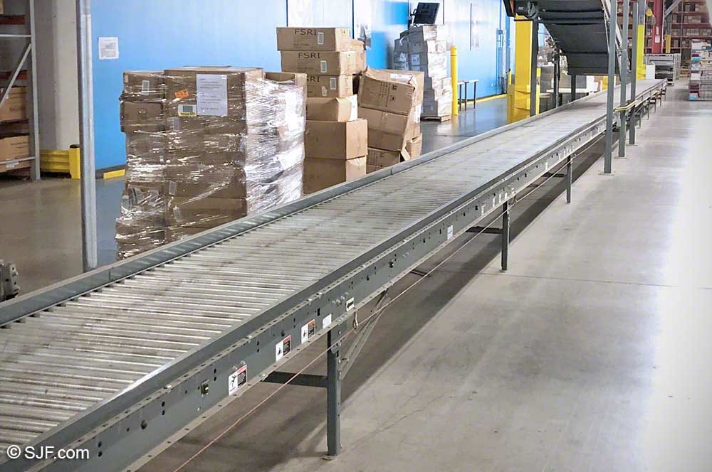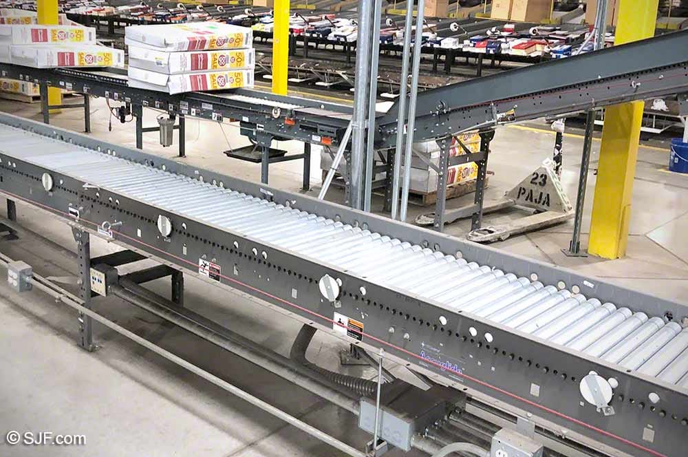 These two systems are both zero pressure photo eye accumulation conveyor systems. The Intelligrated Accuglide PE is a padded chain driven conveyor, while the Intelligrated IntelliQ PE is a narrow belt driven accumulation conveyor.